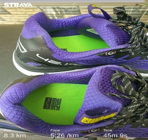 – Sáng chủ nhật, mình bắt đầu lúc 4h30 với mục tiêu 30km, pace 5:30. Cảm giác giày vẫn vậy, ôm chân và bám đường, mình có thể giữ pace mục tiêu rất lâu (hơn 24km). Nhưng đến km28, chân bắt đầu mỏi và trời khá nóng, lúc này 285g/chiếc giày sẽ bắt đầu phát huy sức nặng. Chạy đến 28km chắc chắn sẽ có mồ hôi, và phần gót + luỡi gà thấm đẫm có thể làm tăng thêm trọng lượng. Pace trung bình 5:24 cho 28km cũng không quá tệ cho một ngày nóng cuối tháng 8. Giày support cho bàn chân tốt, không bị lắc hay lật trong lúc chạy. Nói chung dùng để training là quá chuẩn.