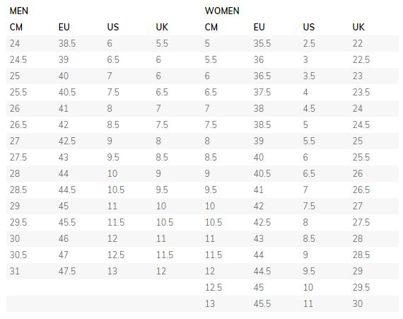 Vậy nếu bạn muốn lấy giày Bmai pace boom mà ngón cái của bạn lại dài hơn ngón giữa, thì bạn sẽ phải tăng 1/2 đến 1 size ( khoẳng 0.5-1cm ) tùy vào độ dài của ngón cái so với ngón giữa. sau khi đã có số đo rồi, việc tiếp theo chính là áp theo khuôn mẫu chuẩn của các hãng đưa ra.