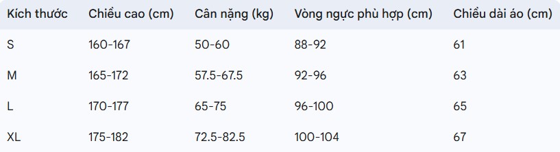 Bảng size Nam: