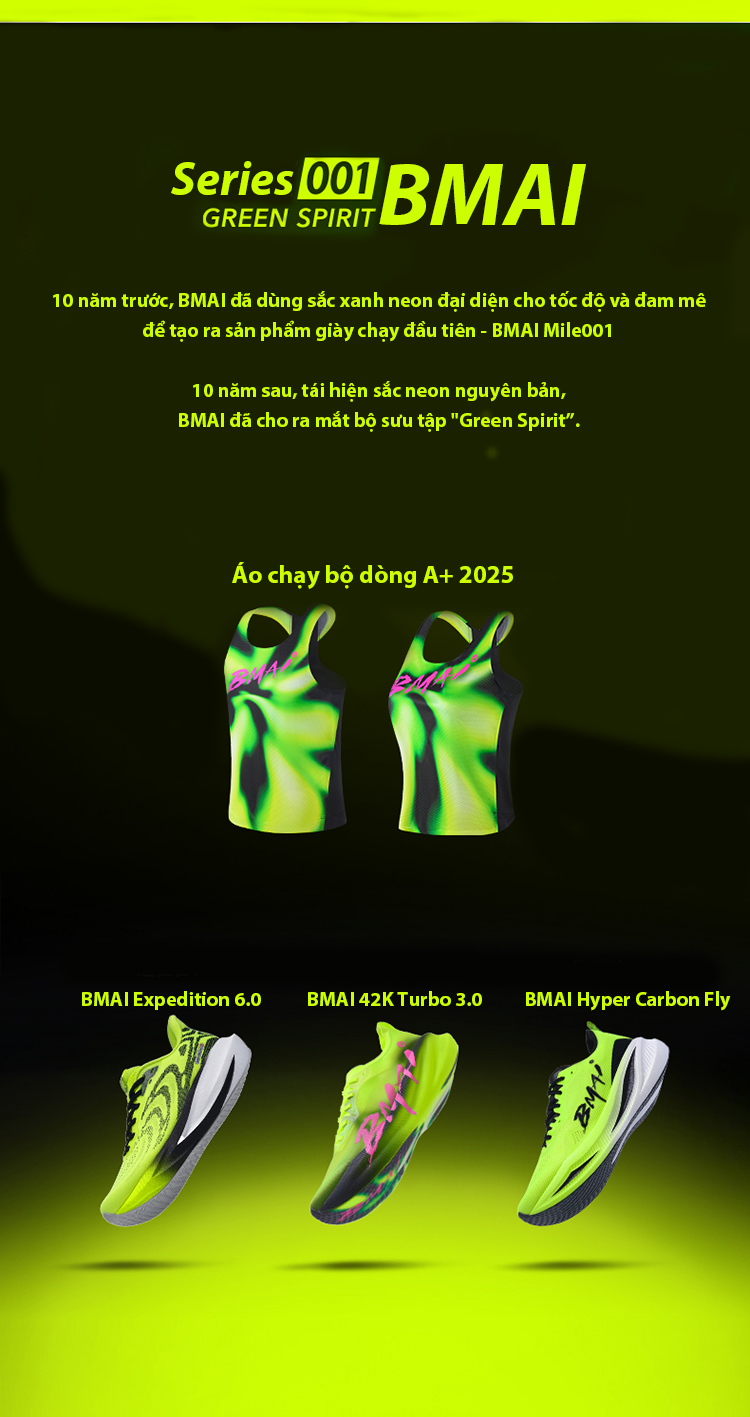 Áo chạy bộ nam BMAI A+ series Green Spirit FRVL001