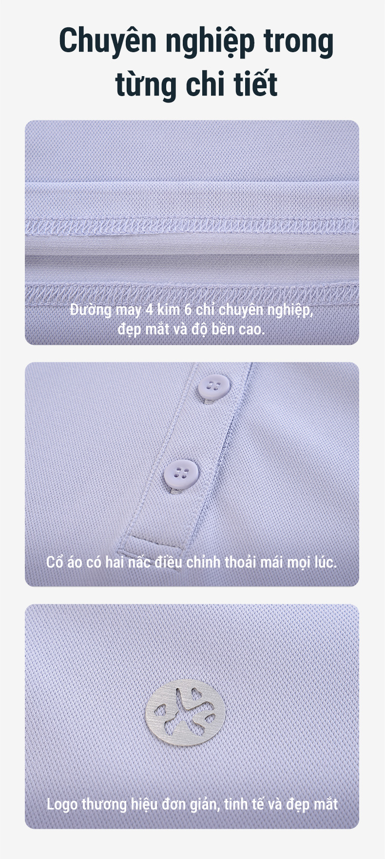 Đường cắt may hiện đại: Bên cạnh kiểu dáng Polo cổ điển, áo còn được may với đường cắt may hiện đại, ôm sát cơ thể, tôn lên vóc dáng người mặc. Các đường may tinh tế, tỉ mỉ tạo nên sự hoàn hảo cho sản phẩm.
