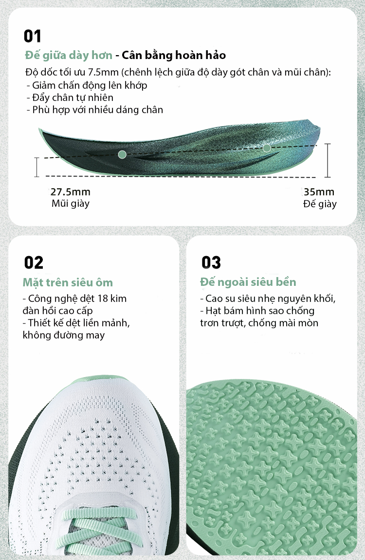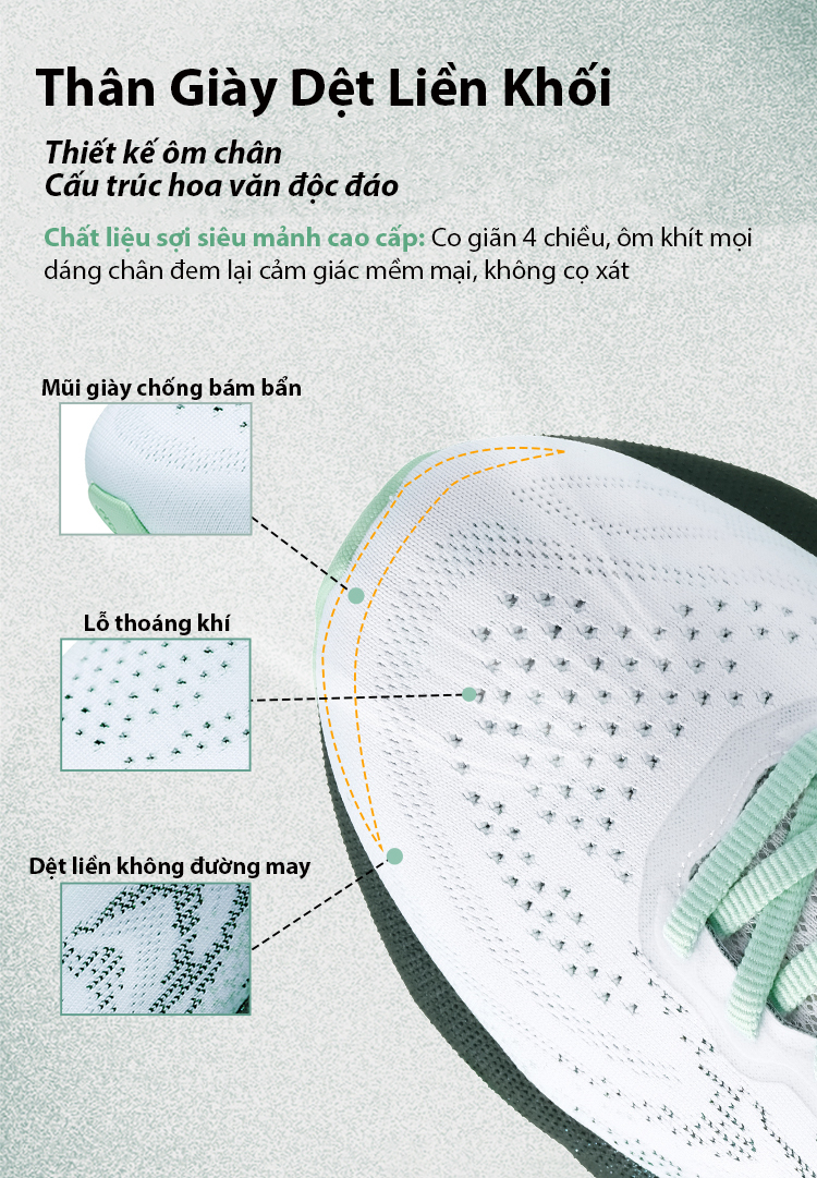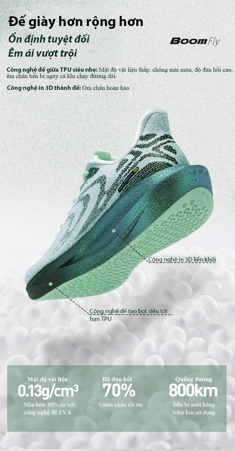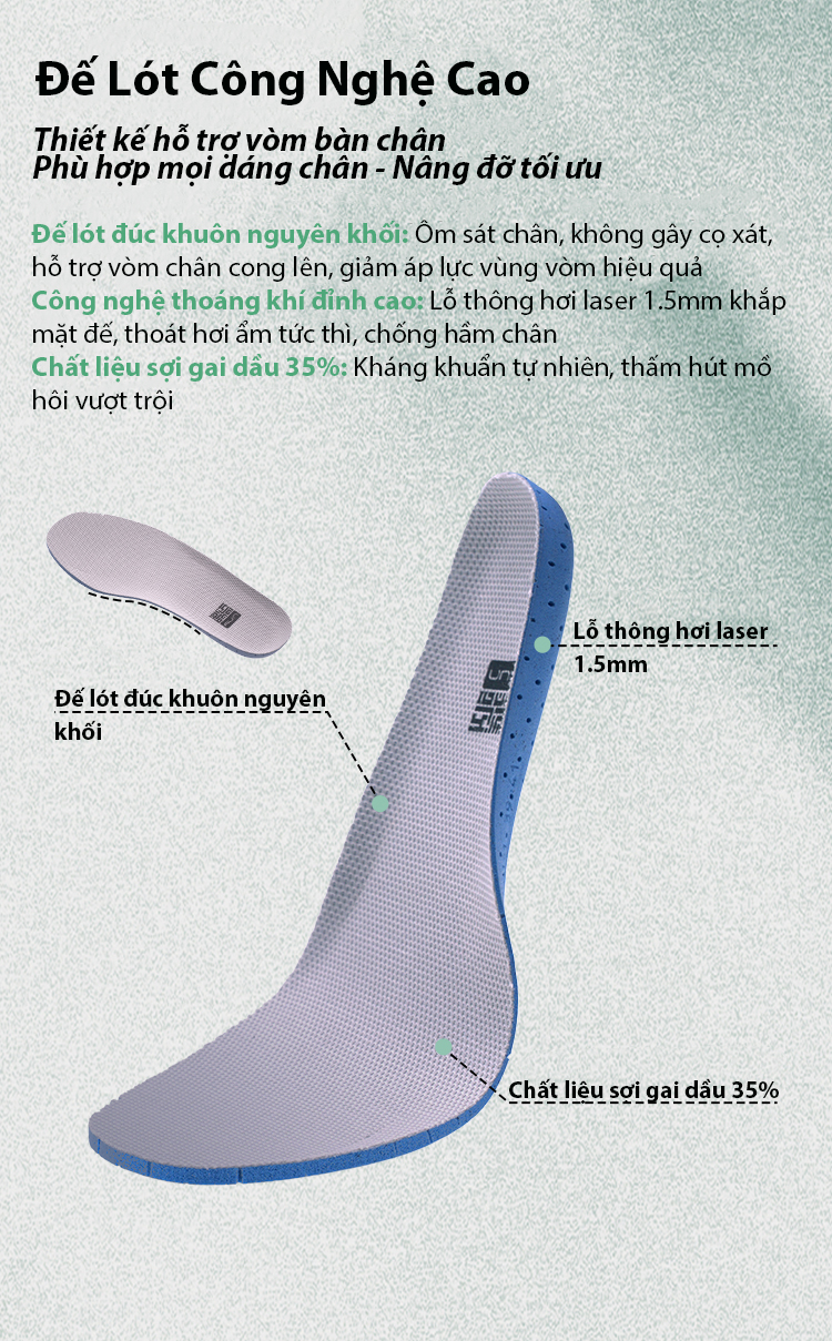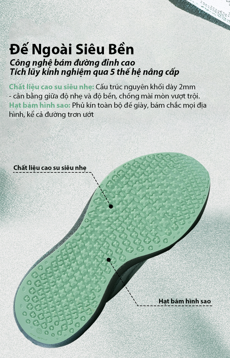Trọng lượng nhẹ hơn 30%: Công nghệ vật liệu siêu nhẹ, không gây mỏi chân