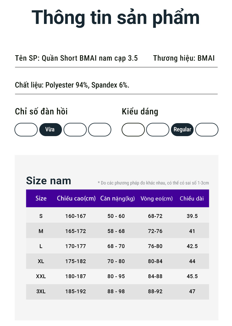 Với các tone màu trẻ trung và phong cách, quần short BMAI sẽ giúp bạn tự tin và nổi bật trong mọi hoạt động thể thao.