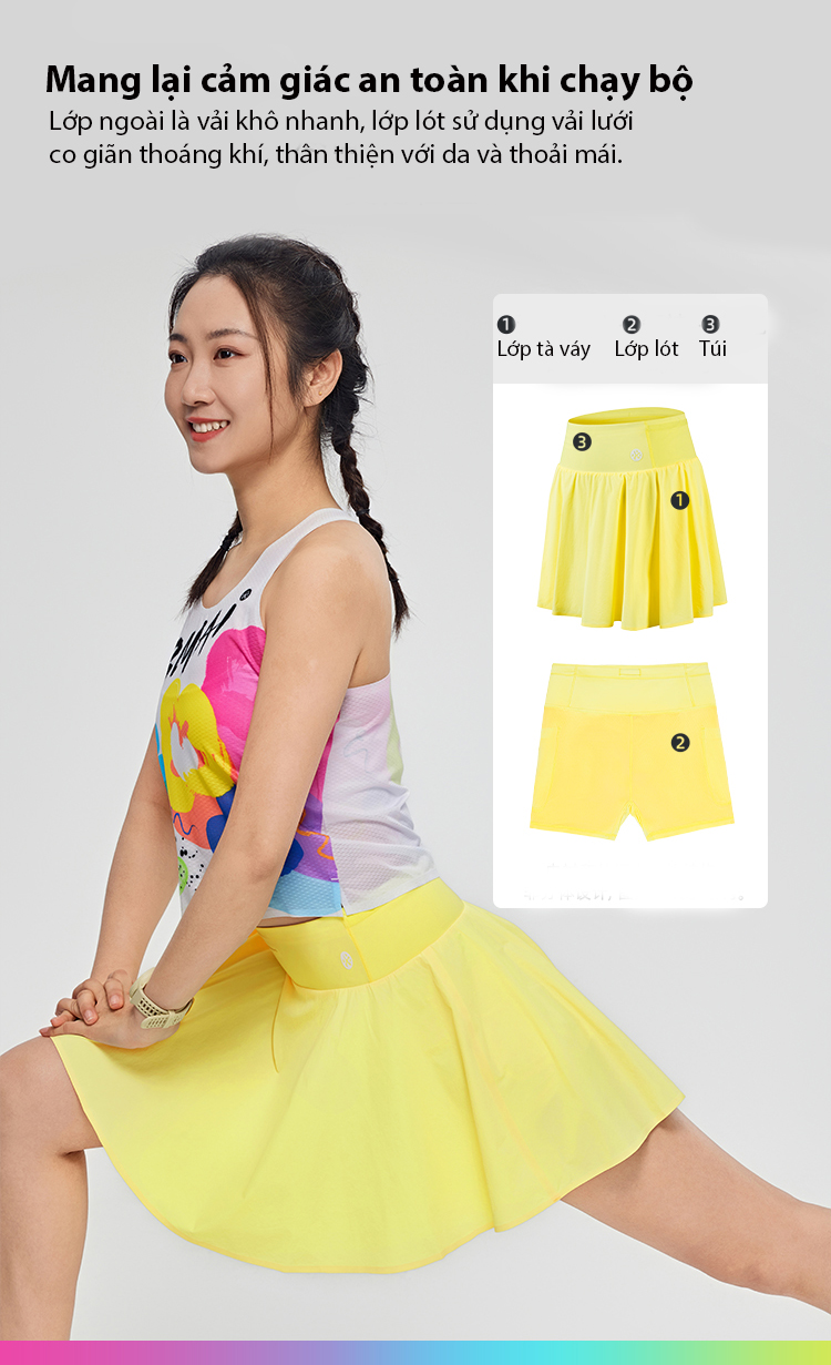 Chiếc váy chạy bộ này là lựa chọn lý tưởng cho nhiều hoạt động thể thao ngoài trời. Bạn có thể tự tin sải bước trên đường chạy bộ, tham gia các buổi tập gym, hoặc đơn giản là diện khi đi dạo, đi chơi. Với kiểu dáng trẻ trung và màu sắc bắt mắt, váy dễ dàng phối hợp với nhiều loại áo thể thao hoặc phụ kiện khác nhau. Thiết kế này đặc biệt phù hợp để che khuyết điểm cơ thể, giúp bạn tự tin hơn với vóc dáng của mình.